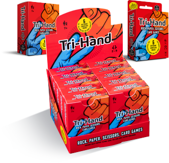 A fresh, tactile take on the traditional game Rock, Paper, Scissors. Tri-Hand offers six card games around an idea with instant recognition... Simple enough for youngsters but challenging enough for grown ups. Age 7+.